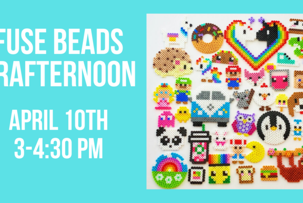 Join us for a fun afternoon of crafting with fuse beads on Friday, April 10th from 3-4:30 pm in the Community Room! Fuse beads are tiny plastic beads that can…